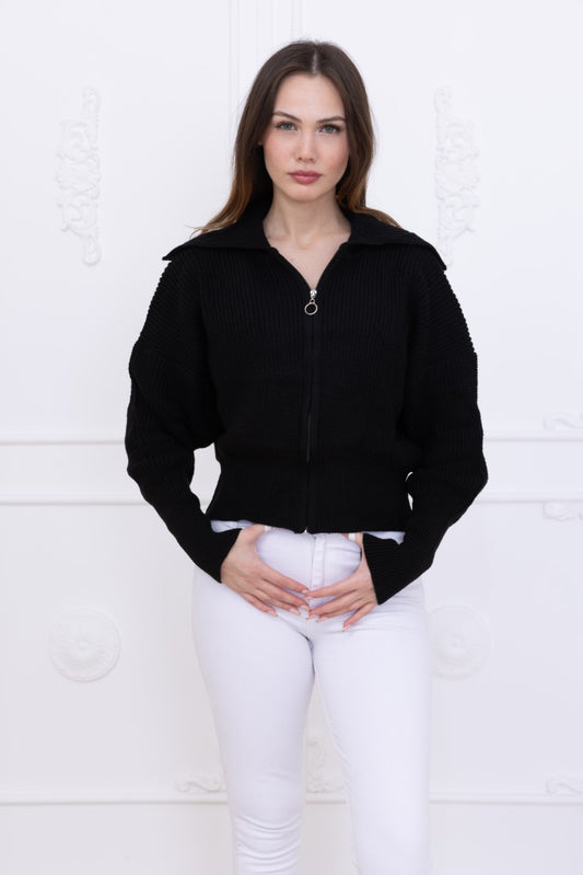 Devrik Yakalı Fermuarlı Kadın Triko Hırka TR240753