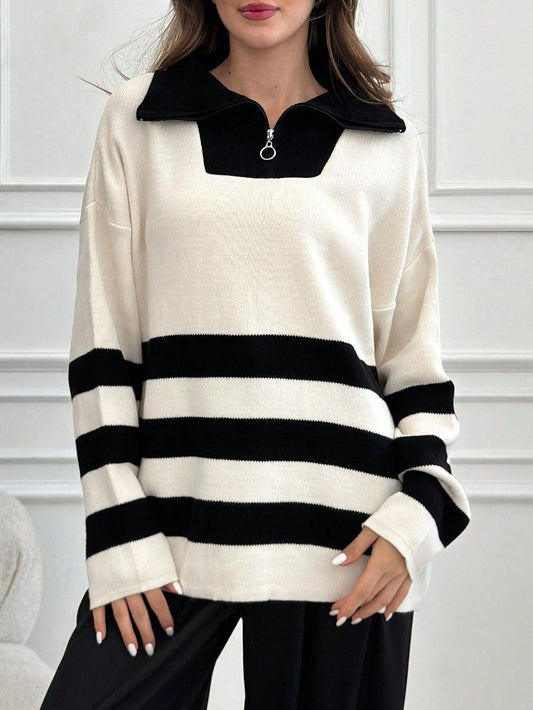 Premium Çizgili Kamyoner Yaka Kadın Triko Kazak TR241249