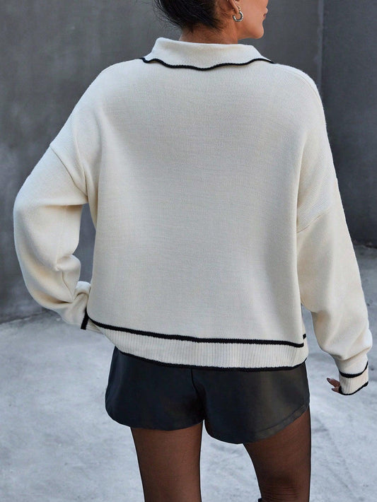 Kurdeleli Özel Polo Yakalı Kadın Triko Kazak TR241282